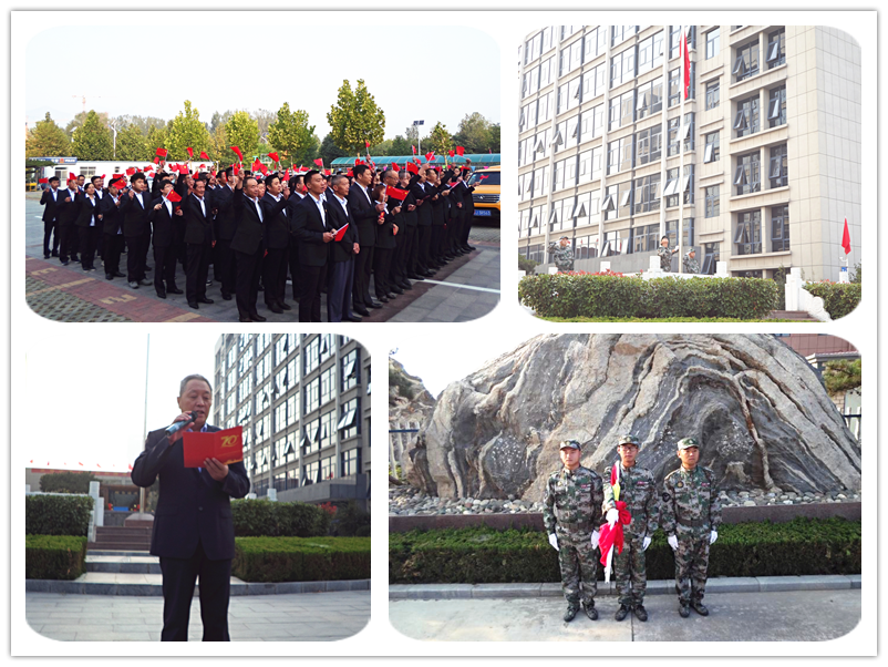 儀式上,集團(tuán)董事長李廣法發(fā)表莊嚴(yán)致辭。致辭中提到:“70年,路漫漫滄桑幾度,旗獵獵風(fēng)雨如磐;70年,中華兒女砥礪奮進(jìn)、眾志成城、攻堅克難,為民族復(fù)興奮斗;七十年,強(qiáng)國征程波瀾壯闊,華夏巨變舉世矚目。中華民族從未像今天這樣,似騰飛的巨龍,像咆哮的雄獅,以東方巨人的英姿讓世界刮目相看,贏得世界尊敬;中國人民從未像今天這樣幸福和美、揚眉吐氣,我們對國家和民族的前途充滿信心?!?br />        以此號召集團(tuán)全體干部員工緊密團(tuán)結(jié)在以習(xí)近平為核心的黨中央周圍,闊步新時代,高舉習(xí)近平新時代中國特色社會主義旗幟,不忘初心,牢記使命,把強(qiáng)烈的愛國熱情轉(zhuǎn)化為干好本職工作的實際行動,為建設(shè)社會主義現(xiàn)代化強(qiáng)國而努力奮斗!