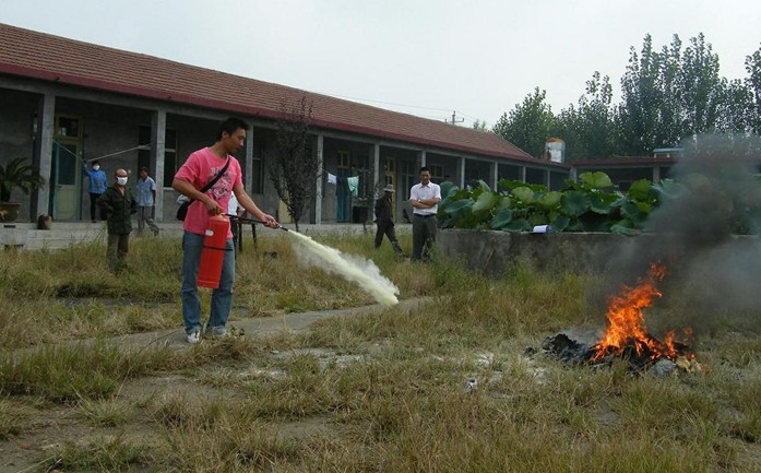 參加此次演練的有生產(chǎn)副總鄭理、技術(shù)副總苗海濱、安環(huán)部負責(zé)人葛業(yè)成、保溫廠廠長楊圣勇及其他相關(guān)工作人員。安環(huán)部主要負責(zé)人在現(xiàn)場給大家講解了如何識別滅火器的壓力表指示、如何識別滅火器有無過期等一些消防知識。參加人員依照演練程序,布置演練現(xiàn)場,先示范滅火,再依次操作滅火,成功進行了消防演練。