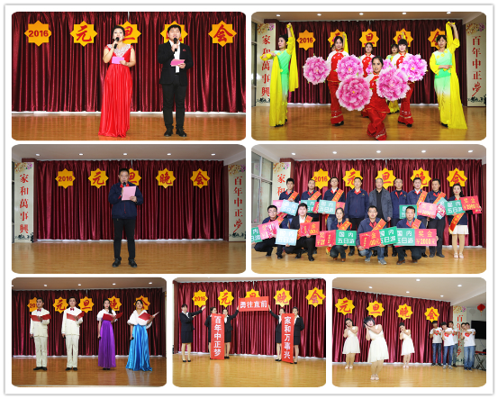 下午16:30,中正集團(tuán)2016年“百年中正夢(mèng),家和萬事興”元旦晚會(huì)拉開帷幕。精彩的開場(chǎng)舞《家和萬事興》之后,集團(tuán)副總經(jīng)理王曉東代表董事會(huì)致新年賀詞,對(duì)過去的一年進(jìn)行簡(jiǎn)單回顧,表達(dá)了對(duì)新年的美好祝愿。晚會(huì)節(jié)目精彩紛呈,詩歌朗誦、歌曲、舞蹈、互動(dòng)游戲輪流登場(chǎng),讓人目不暇接。晚會(huì)結(jié)束前,集團(tuán)董事長(zhǎng)李廣法、集團(tuán)副總經(jīng)理葉恒剛、王曉東對(duì)本年度11名優(yōu)秀員工進(jìn)行表彰。最后,以手語舞蹈《感恩的心》結(jié)束了本屆晚會(huì),獲得了圓滿成功。